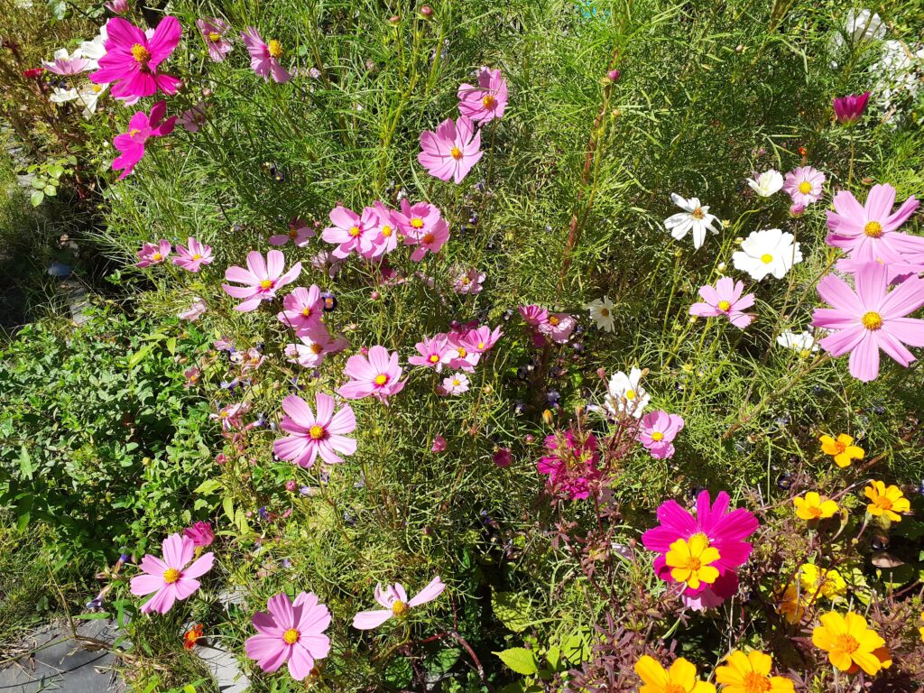 月影谷のお宅の庭のコスモスが満開です。