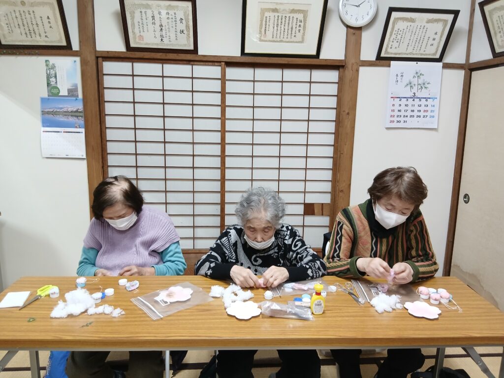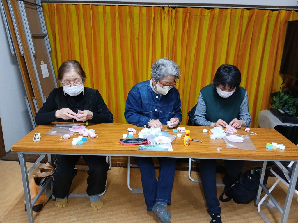 ペットボトルの蓋を利用して人形つくり🎵糸の端が何処に行ったか…ボンドでくっついた~⁉️美的センスで自分の人形つくりに励みました。今回も眼と指先と頭をフル回転させ、脳の活性化達成です♥️疲れた脳にお茶とお菓子を振る舞い楽しいサロンが終わりました。4月からのサロンは第4金曜日となります。