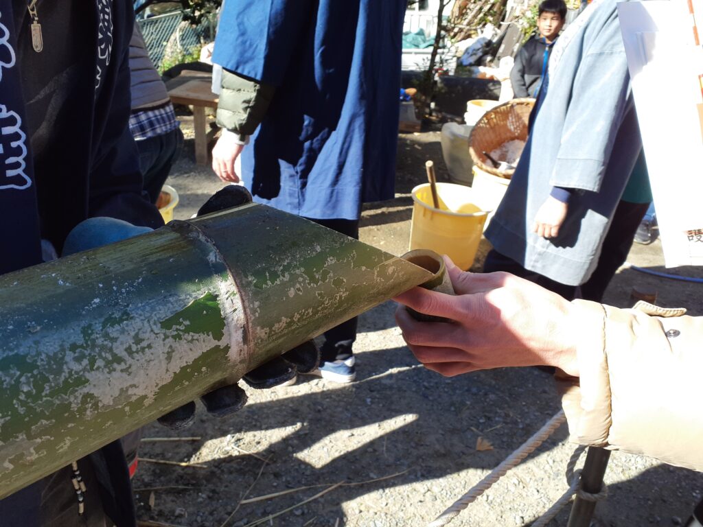 熊野新宮元旦祭に行ってきました / イベント 熊野新宮の元旦祭に行って来ました~🎵神事のあと、お餅つきでは、あんこ、きな粉、大根おろし。甘酒が振る舞われました。そして青竹の徳利と青竹のおちょこの御神酒です。大勢の人が参拝に訪れていました。