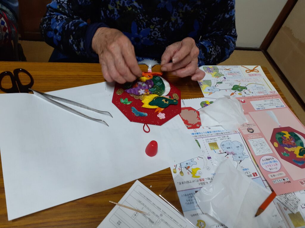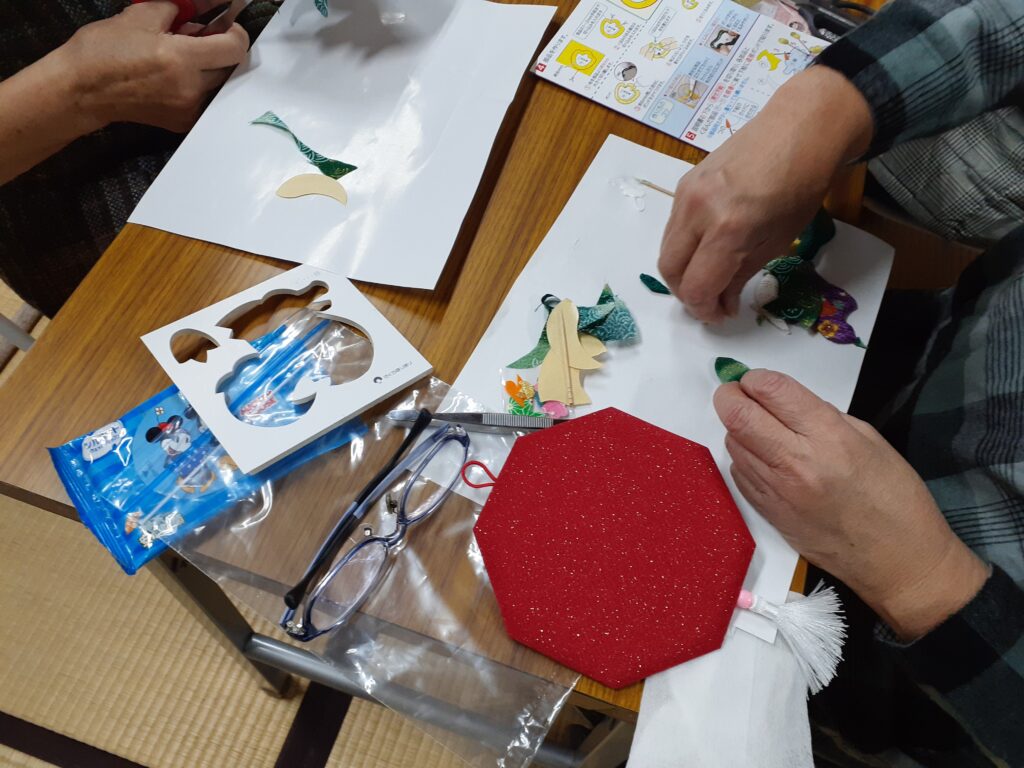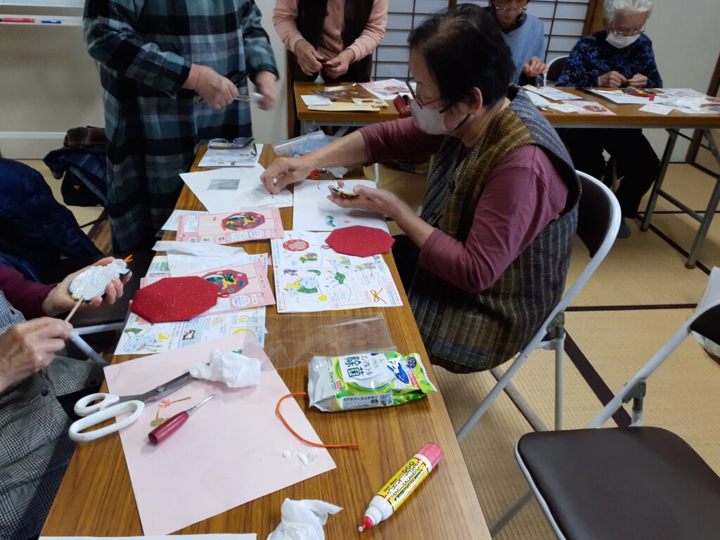 11月21日 極楽寺サロン 干支のちぎり絵 / 公会堂 来年の干支の竜の押し絵を作りました。皆さん久しぶりの工作で部品が何処かに紛れたり、目を細めて奮闘しました~🎵部品を確認して作業中‼️出来上がりを頭に描きボンドをつけていきます。やっと終わりました!完成で~す🎵