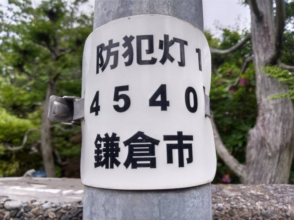 (写真:防犯灯登録番号)防犯灯の電球管理は市役所が行います。電球の修理交換依頼は防犯灯コールセンター電話番号0120-933-790、又は市役所に電話して、写真の防犯灯登録票の記載内容を伝えて下さい。